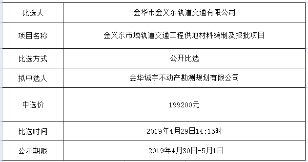 金華市金義東軌道交通有限公司運營環(huán)境長效管理系統(tǒng)項目中標候選人公示