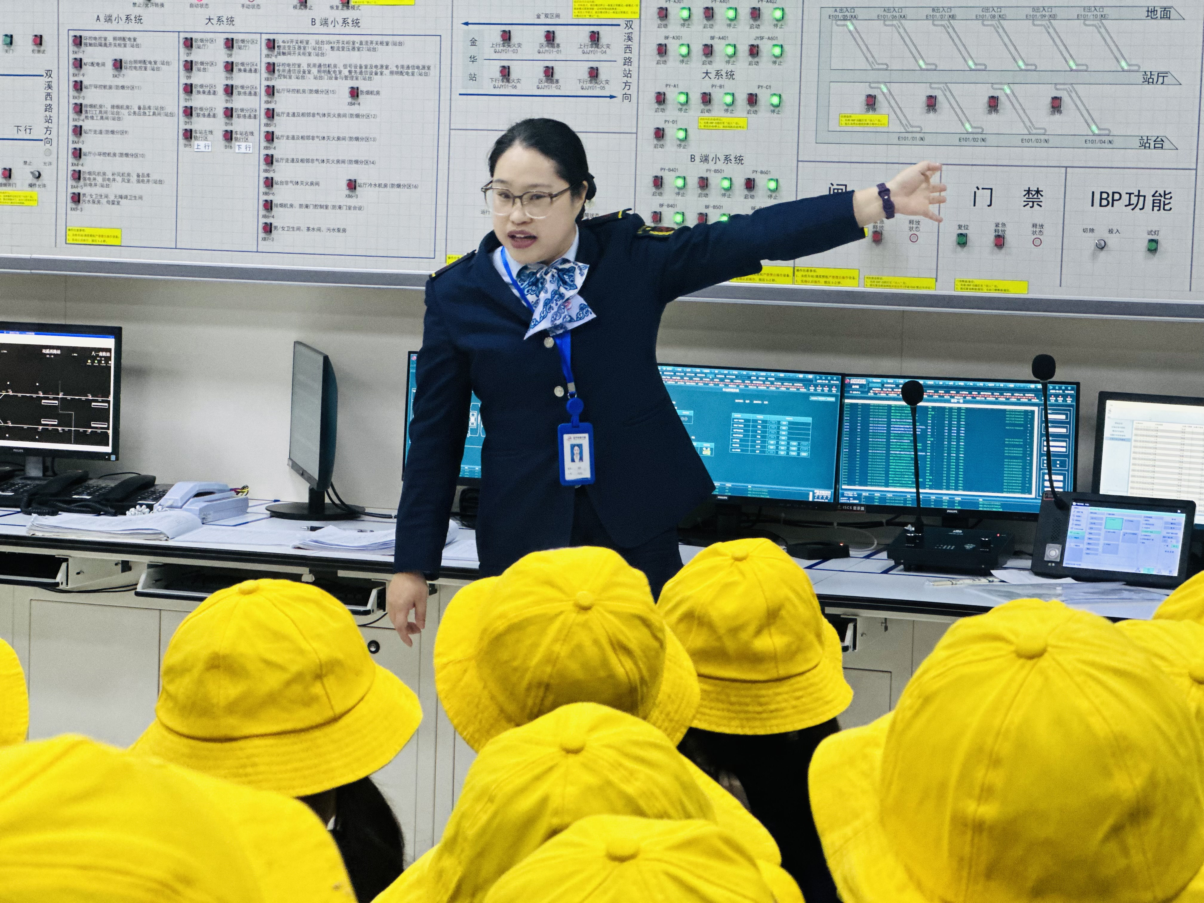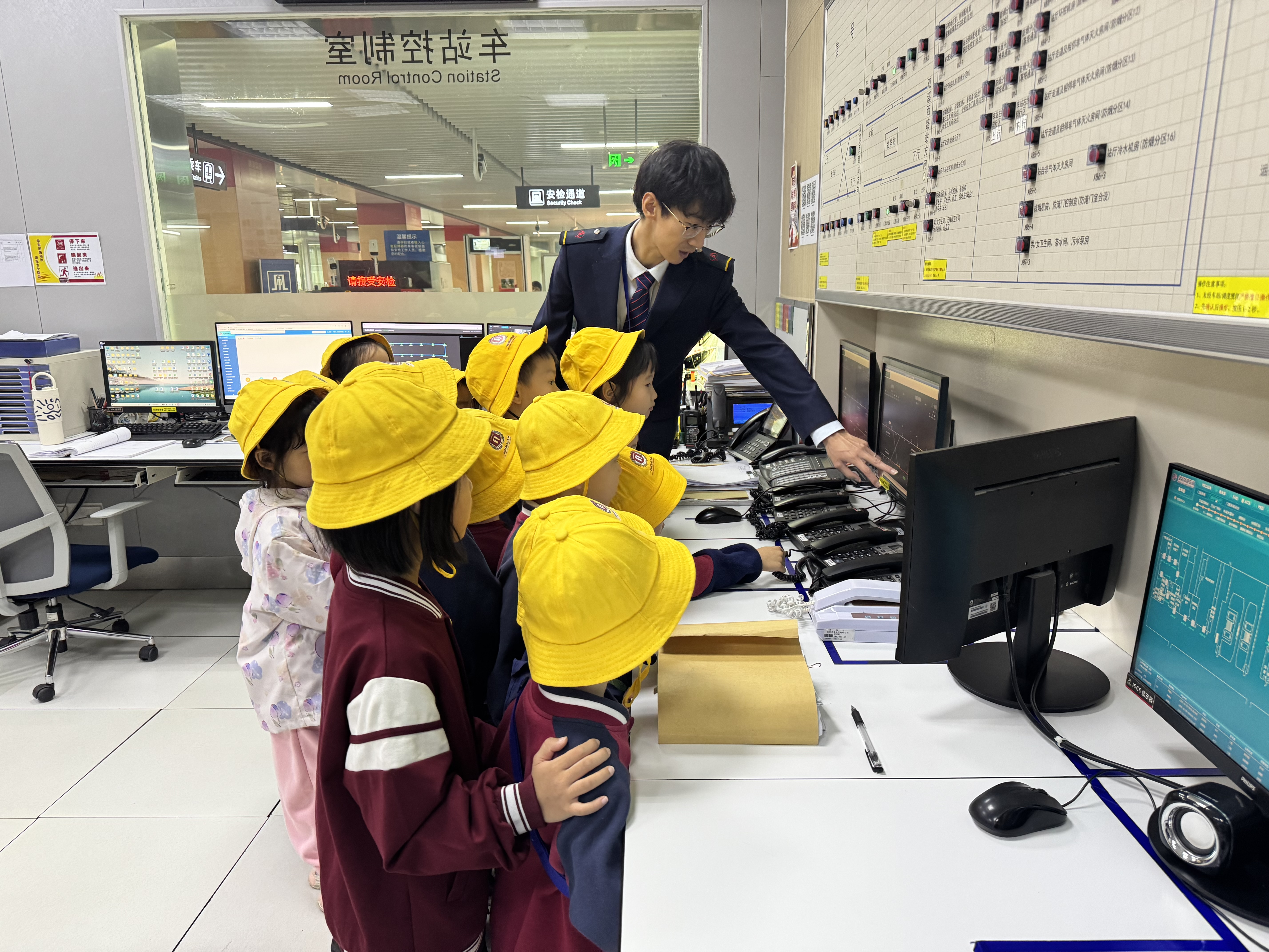 “這里就是控制整座車站運(yùn)行的‘最強(qiáng)大腦’!”在工作人員的引導(dǎo)下,孩子們走進(jìn)“神秘”的車控室。綜合監(jiān)控顯示的列車運(yùn)行信息、站臺(tái)實(shí)時(shí)畫面,引來孩子們陣陣驚嘆。“哥哥,這個(gè)屏幕能看到我家附近的車站嗎?”“那個(gè)紅色按鈕是做什么的?”面對(duì)大家充滿想象力的提問,工作人員耐心解答,并邀請(qǐng)他們輪流觀察監(jiān)控屏幕,近距離感受科技護(hù)航安全的魅力。